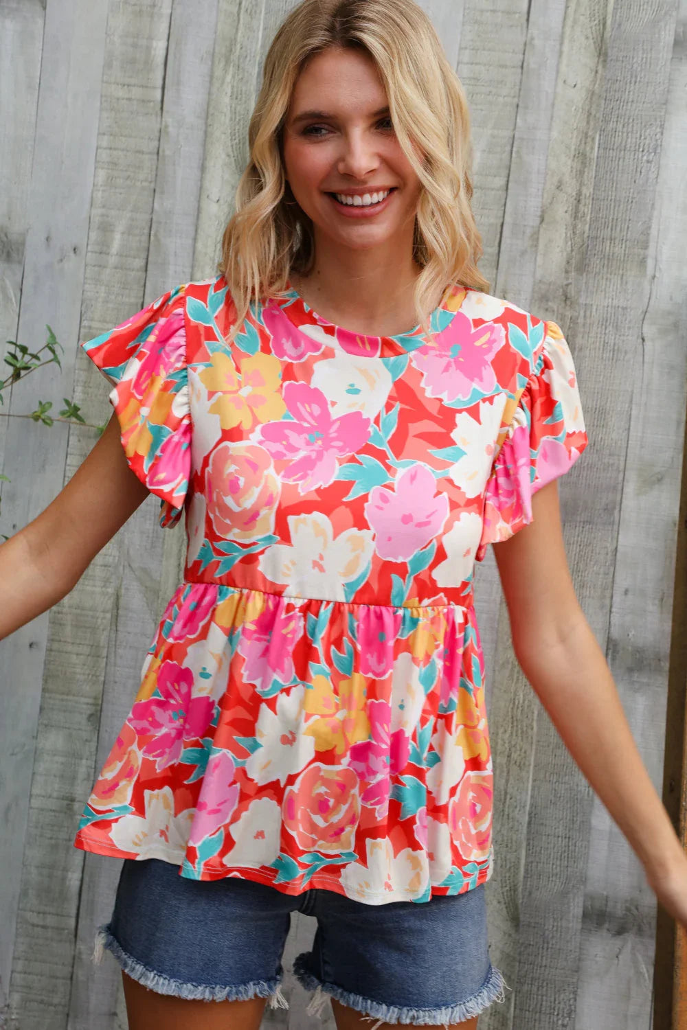 This lightweight and adorable babydoll peplum top features stunning floral print, folded short sleeves and a classic round neck. Add instant casual chic to any ensemble.
