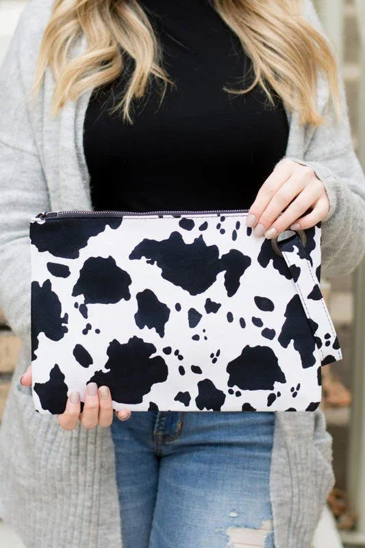Keep your on-the-go look simple and classic-Now in TRENDING COW PRINT!